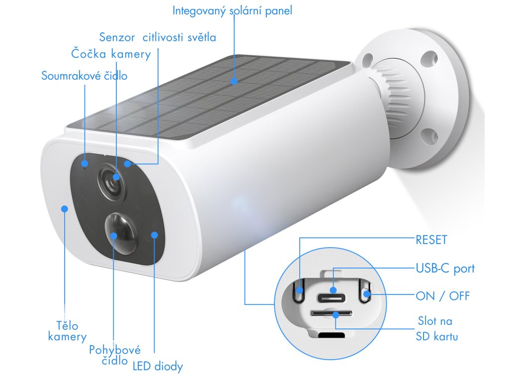 Výhodou modelu C3-30W je jednoduchá a rýchla inštalácia. Solárny panel je zabudovaný v tele fotoaparátu, takže nie je potrebné montovať solárny panel samostatne.