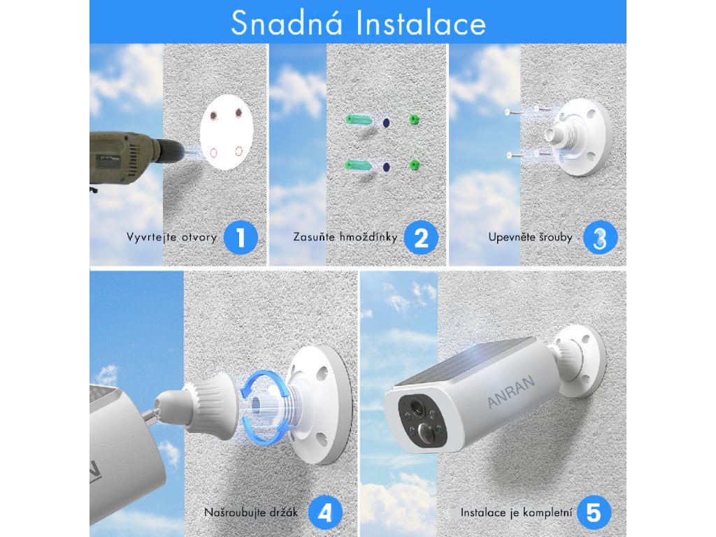 - Solárna IP WiFi kamera ANRAN C3-30W