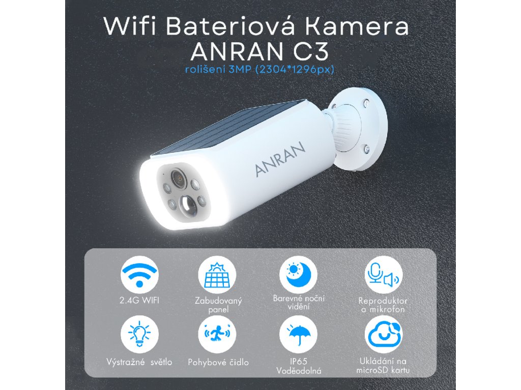 Batériová Ip WiFi kamera ANRAN C3-30W / rozlíšenie 3MP / batéria 5200mAh / Solárny panel 3W