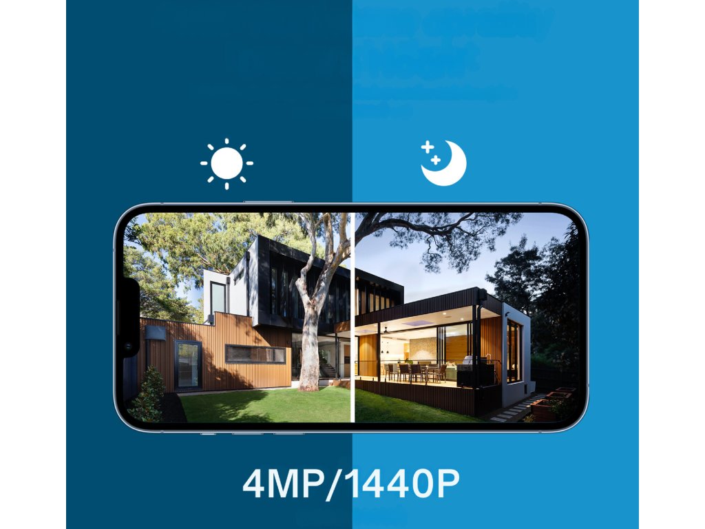 Kamerový systém ANRAN W40-Q04 je zárukou, že budete mať k dispozícii vždy čistý a ostrý obraz v rozlíšení 2K QHD (4MP – 2560×1440px). A to nielen cez deň, ale aj v noci a pri zhoršenej viditeľnosti, napríklad v hmle – a to až na vzdialenosť 20 metrov. Objektív s 3,6mm šošovkou a CMOS senzorom sníma širokouhlý obraz so zorným uhlom 100°. Kamery majú konštrukciu s elektronickým otáčaním v rozsahu 355° horizontálne a 90° vertikálne. Vďaka tomu sú jednotlivé kamery schopné pokryť a monitorovať prakticky celý priestor vo svojom okolí, bez "slepých oblastí". Pre priblíženie najmenších detailov je k dispozícii 4× digitálny zoom, s ktorým ľahko rozpoznáte evidenčné značky áut aj tváre ľudí.“