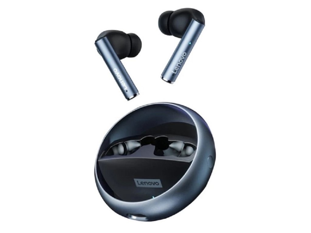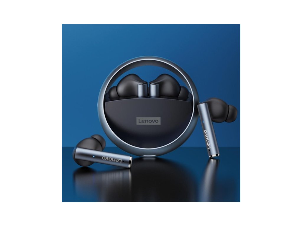 Bezdrôtové slúchadlá Lenovo LP 60 s jedinečným dizajnom dobíjacieho boxu s otočnou kolískou a ľad indikáciou nabíjania.