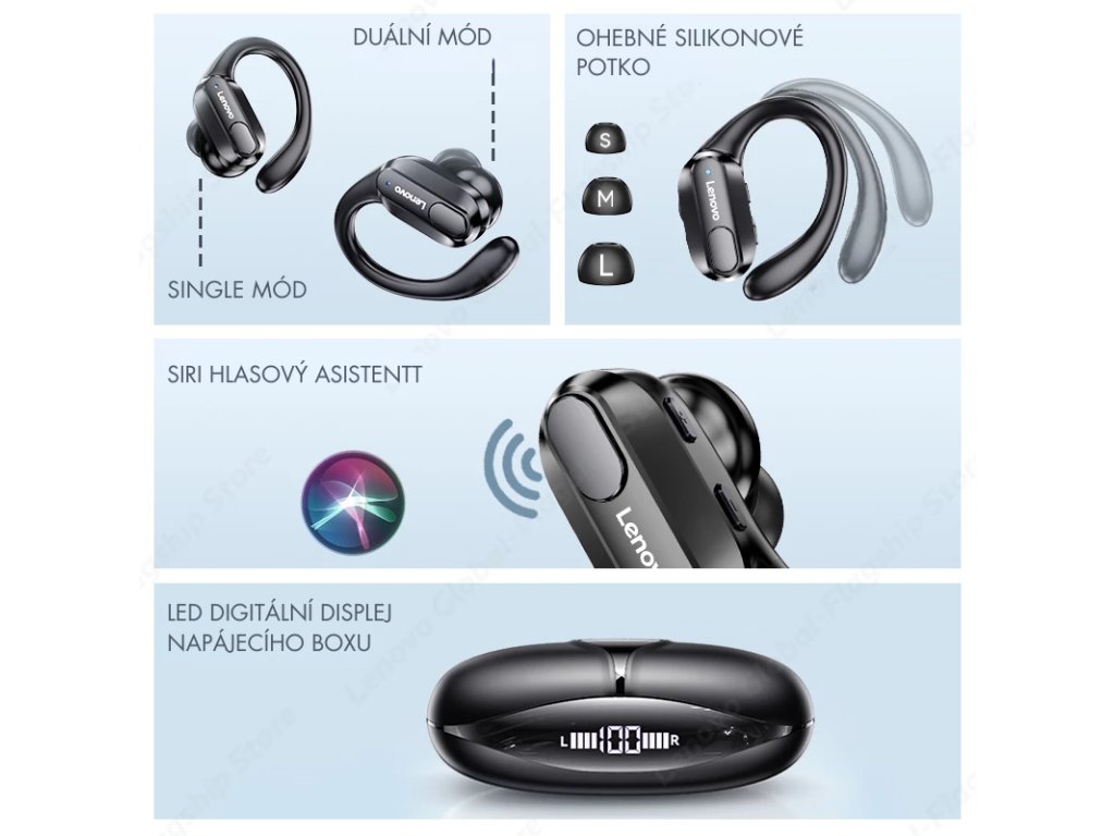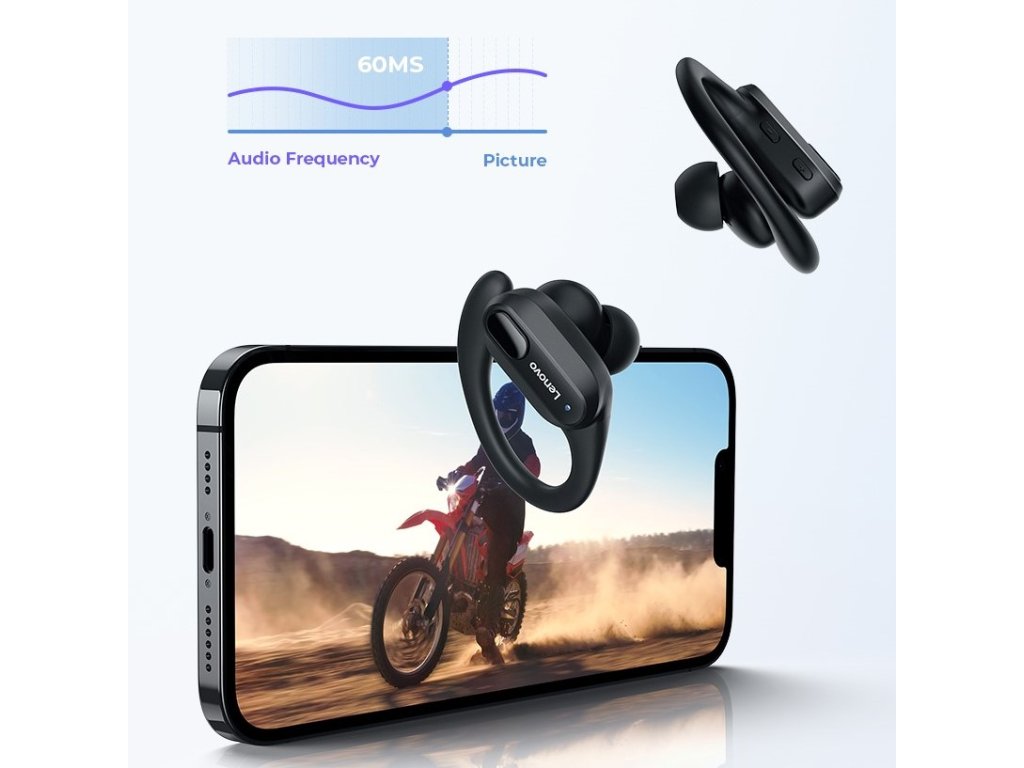 Bezdrôtové bluetooth slúchadlá Lenovo ThinkPlus XT 80 so silikónovými pútkami za ucho vhodné pre šport, prácu počúvanie hudby aj hranie hier. Skvelý zvuk, dlhá životnosť a čisté hovory s ANC sú dôvody, prečo si slúchadlá okamžite zamilujete.
