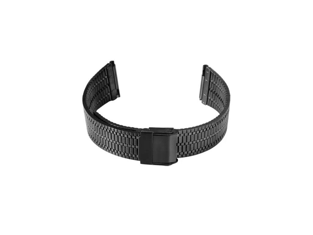 Elegantný sieťovaný remienok na hodinky / farba čierna / materiál oceľ s povrchovou úpravou / šírka 22 mm / nastaviteľná dĺžka pre obvod zápästia od 10 do 18 cm / bezpečnostné zapínanie proti strate a náhodnému rozopnutiu.
