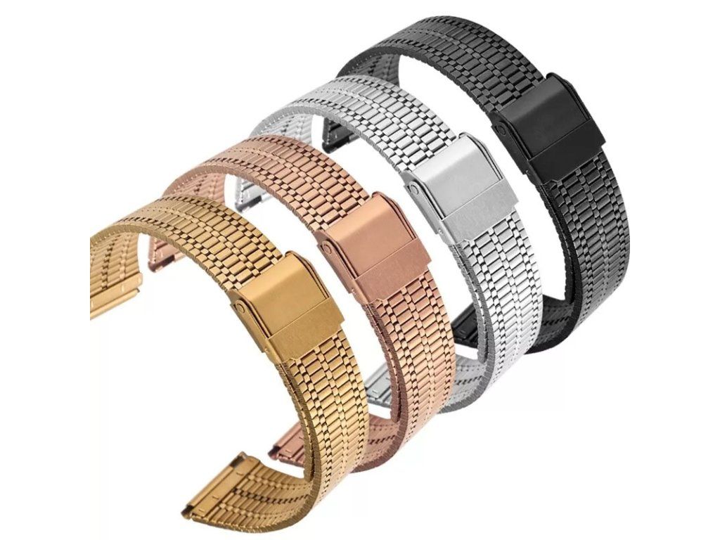 Štýlový milánsky kovový remienok v čiernej far be pre elegantné a klasické hodinky. Jednoduché upevnenie a výmena popruhu pomocou rýchloupínacích pútok (sú súčasťou balenia).