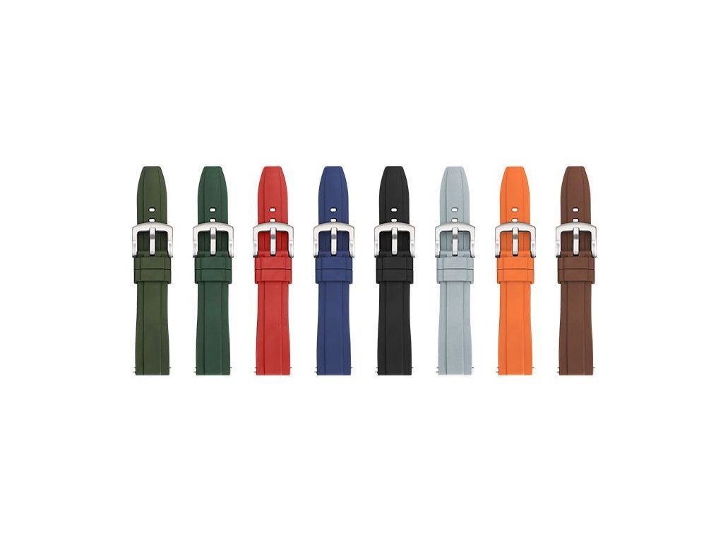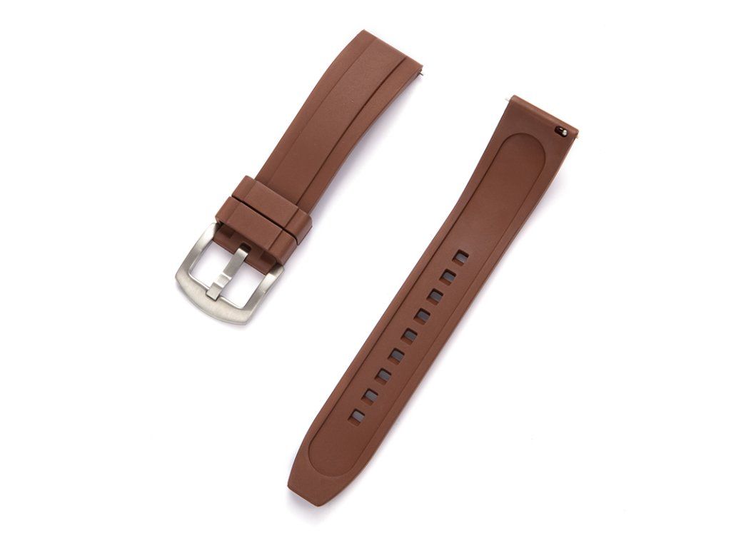 Hnedý silikónový remienok určený pre hodinky so šírkou remienka 20 mm vyrobený z hypoalergénneho silikónu. Odolný a mäkký materiál zaručuje pohodlie a komfort pri celodennom nosení a športe.