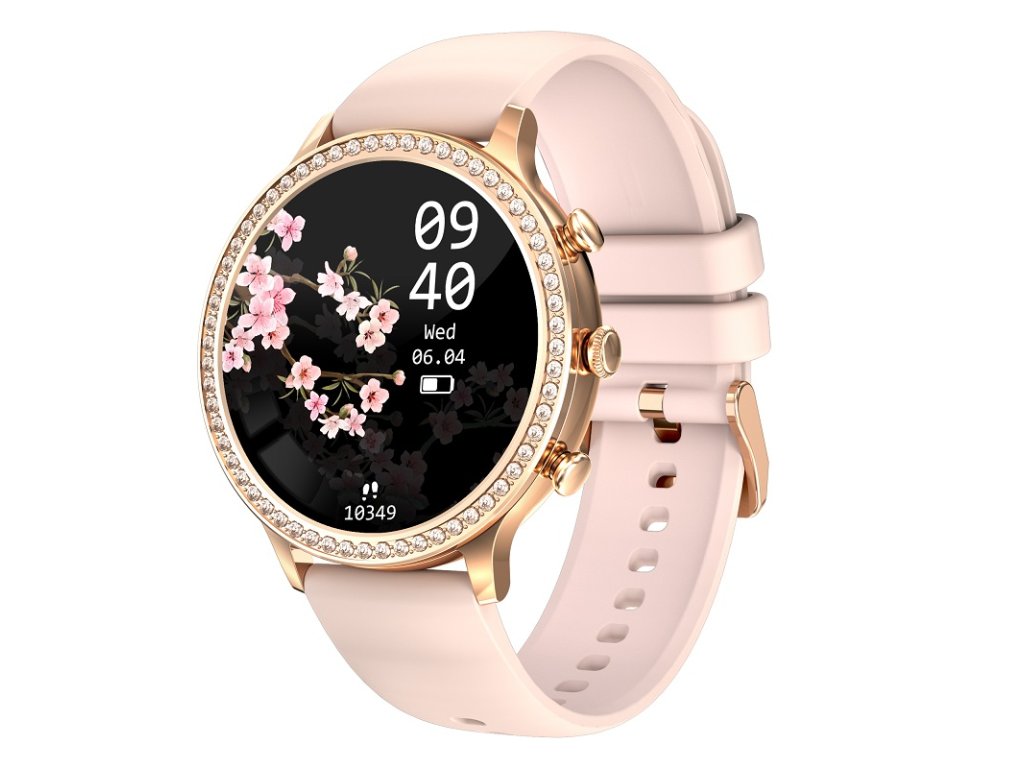 Dámske inteligentné hodinky LUMINA Femi I70 Fit stelesňujú štýl a eleganciu. Prvotriedne spracovanie podčiarkuje kovový ciferník zdobený 60 svietiacimi kryštálmi a vybavený brilantným displejom AMOLED.