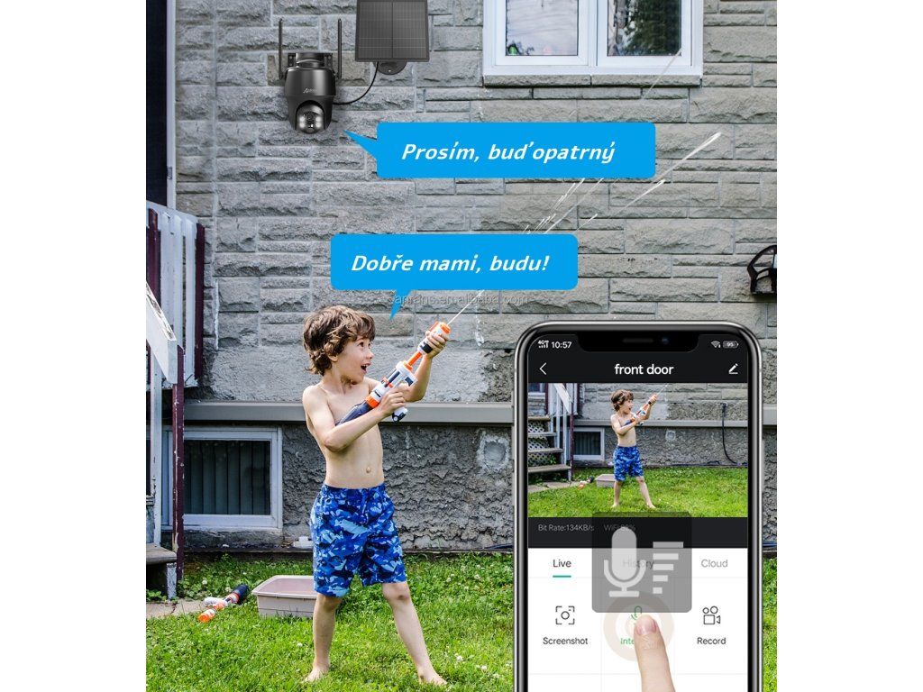 Kamera 4G napájaná z batérie plní všetky funkcie klasickej bezpečnostnej kamery. Obraz s uhlom záberu 90° môžete kedykoľvek online sledovať pomocou aplikácie ANRAN na smartfóne alebo EseeCloud na stolnom počítači. Aplikácia je kompletne v češtine a je kompatibilná so systémami Android, IOS a Windows. Aplikáciu si môžete stiahnuť z Google Play alebo App Store.