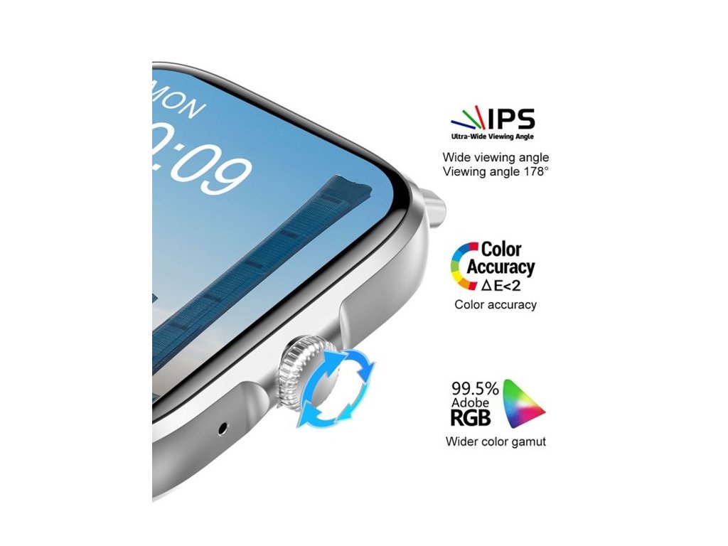 Chytré hodinky Lige DT102 Pro sú doslova nadupané funkciami, s ktorým budete mať prehľad o svojom zdraví a každodenných aktivitách. Tie si môžete prezerať na veľkom, prehľadnom a vysoko jasnom displeji s nekonečným okrajom, ktorý siaha po celých okrajoch ciferníka vrátane kriviek. Dotykový displej IPS má uhlopriečku 1,9 palca, rozlíšenie 240x283px a jemnosť 300 PPI.