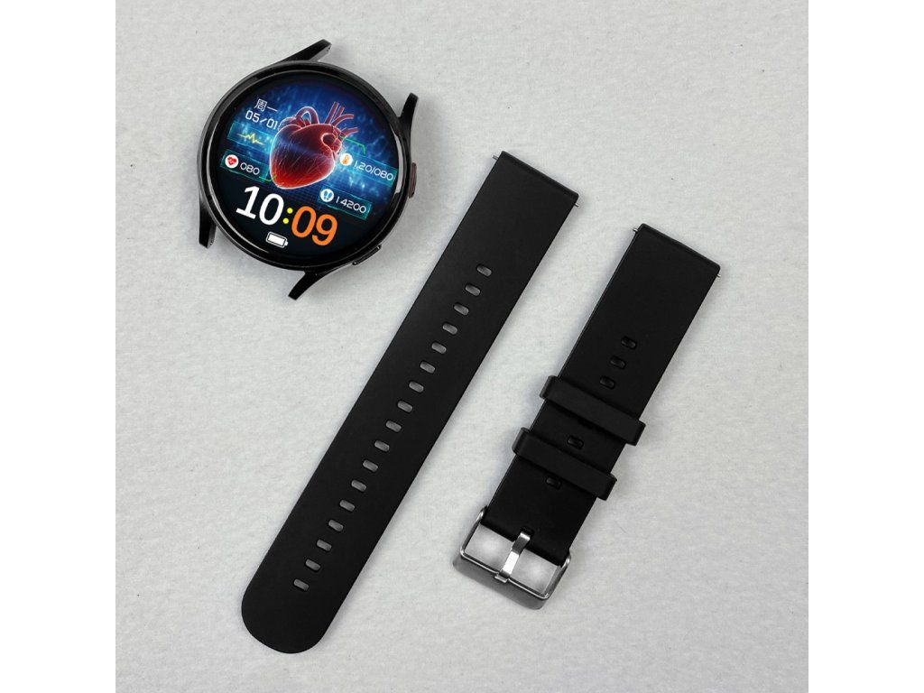 EKG (elektrokardiogram) - meranie elektrickej aktivity srdca. Inteligentné hodinky PulsGo HEALTH GE30 využívajú najnovšiu metódu presného merania EKG pomocou senzorov ECG (elektrografiu) a fotopletyzmografiu na vytvorenie detailného grafu pravidelnosti a frekvencie srdcového rytmu. Pre maximálnu presnosť kombinujú meranie cez elektródu na bočnej strane puzdra hodiniek s meraním optickým senzorom na spodnej strane.