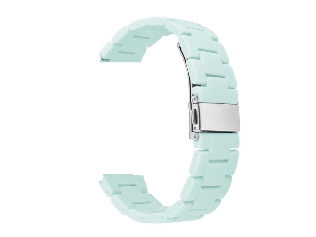 Elegantný remienok z ekologického plastu v pastelovej tyrkysovej farbe určený nielen pre inteligentné hodinky so šírkou remienka 20 mm. Jednoduchá a rýchla výmena remienka pomocou rýchloupínacích očiek (sú súčasťou balenia). Zapínanie z nehrdzavejúcej ocele, spojovacie a upevňovacie očká.