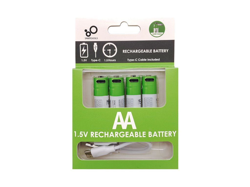 Nabíjacie batérie Smartools 1,5 V AA (tužkové ) poskytujú dostatok energie pre všetky zariadenia v domácnosti. Nabíjanie cez vstup USB-C rovnako ako mobilný telefón.