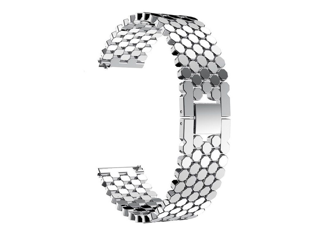 Elegantný a štýlový kovový remienok zo sieťoviny v striebornej farbe určený nielen pre inteligentné hodinky / materiál oceľ s povrchovou úpravou / šírka 22 mm / nastaviteľná dĺžka pre obvod zápästia od 10 do 18 cm / bezpečnostné zapínanie proti strate a náhodnému rozopnutiu.