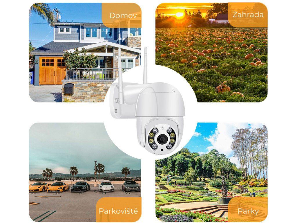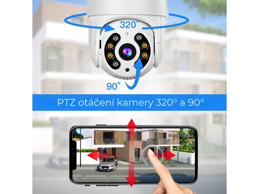 - Otáčanie kamery PTZ 360° / 90° / 4x ZOOM