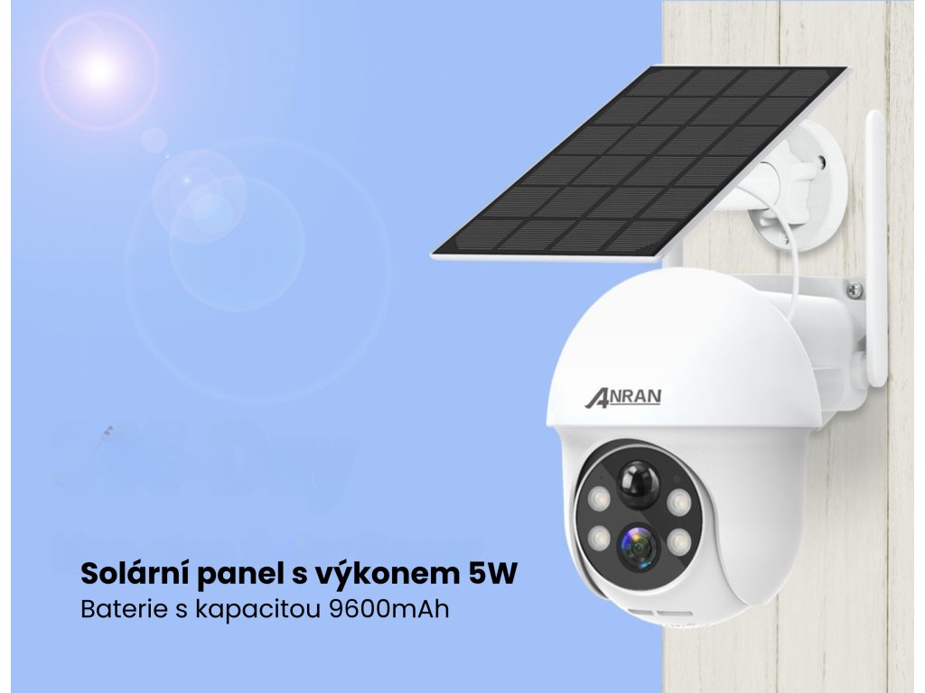 WiFi kamera / Anran Q01 - 50W / rozlíšenie 5MP / batéria 9600mAh / solárny panel 5W / biela