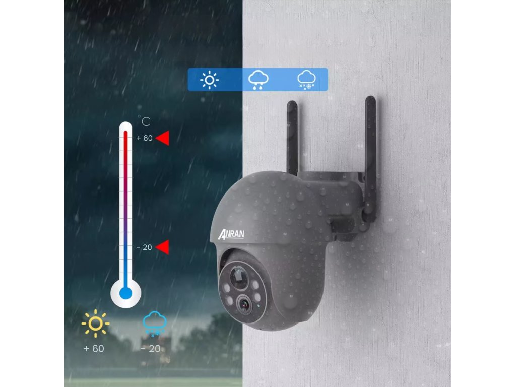 Model ANRAN Q01 - 40W je určený pre vonkajšie aj vnútorné použitie. S certifikáciou IP65 odolá dažďu, priamemu slnku, snehu, hmle aj prachu. Telo z ABS plastu kombinuje vysokú pevnosť s nízkou hmotnosťou, čo uľahčuje montáž. Kamera je navrhnutá pre prevádzku v teplotách od ‑20 °C do +60 °C.